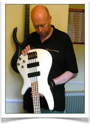 He has also built a Bass to his own specification. - Known as the "Fecker Dubcaster". (Pictured right)